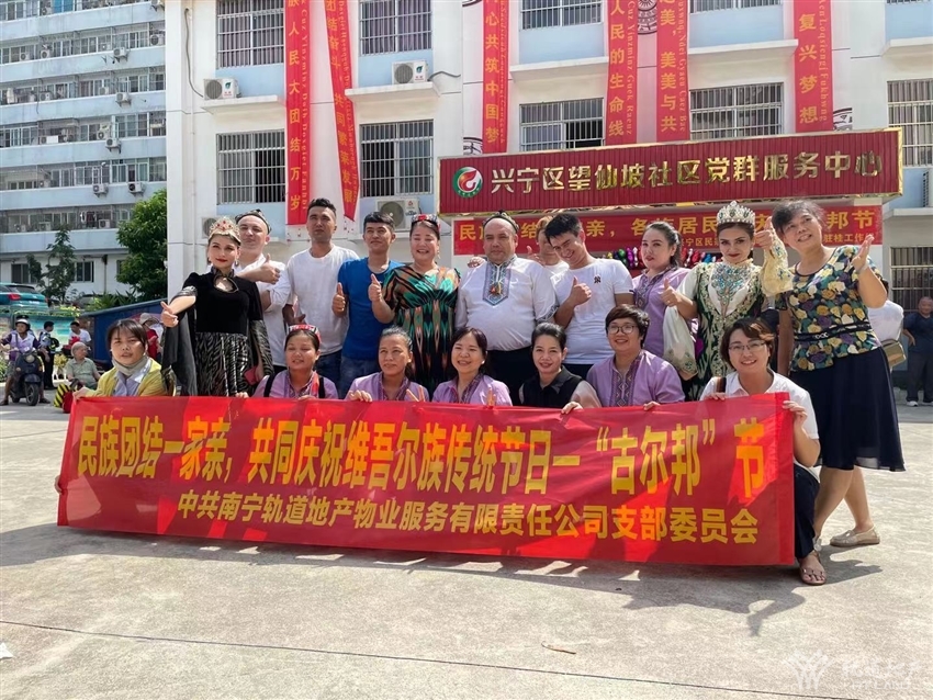 為弘揚(yáng)民族文化,促進(jìn)民族團(tuán)結(jié),鑄牢中華民族共同體意識(shí),結(jié)合中國共產(chǎn)黨成立一百周年的契機(jī),望仙坡社區(qū)、新疆駐桂工作組、興寧區(qū)民宗局于2021715日上午在望仙坡社區(qū)廣場開展古爾邦節(jié)民族文化宣傳活動(dòng),軌道地產(chǎn)物業(yè)公司黨支部作為黨建聯(lián)盟單位,受邀參加此次活動(dòng),與各族群眾一起共同慶祝維吾爾族傳統(tǒng)節(jié)日--“古爾邦”節(jié)。
